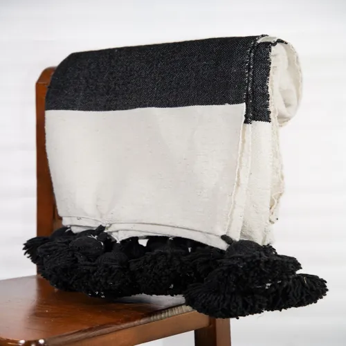 This exquisite Moroccan bed cover showcases the artistry and tradition of Moroccan weaving. The bold central stripe adds a striking contrast to the subtle background, making it a versatile and stylish addition to any bedroom.