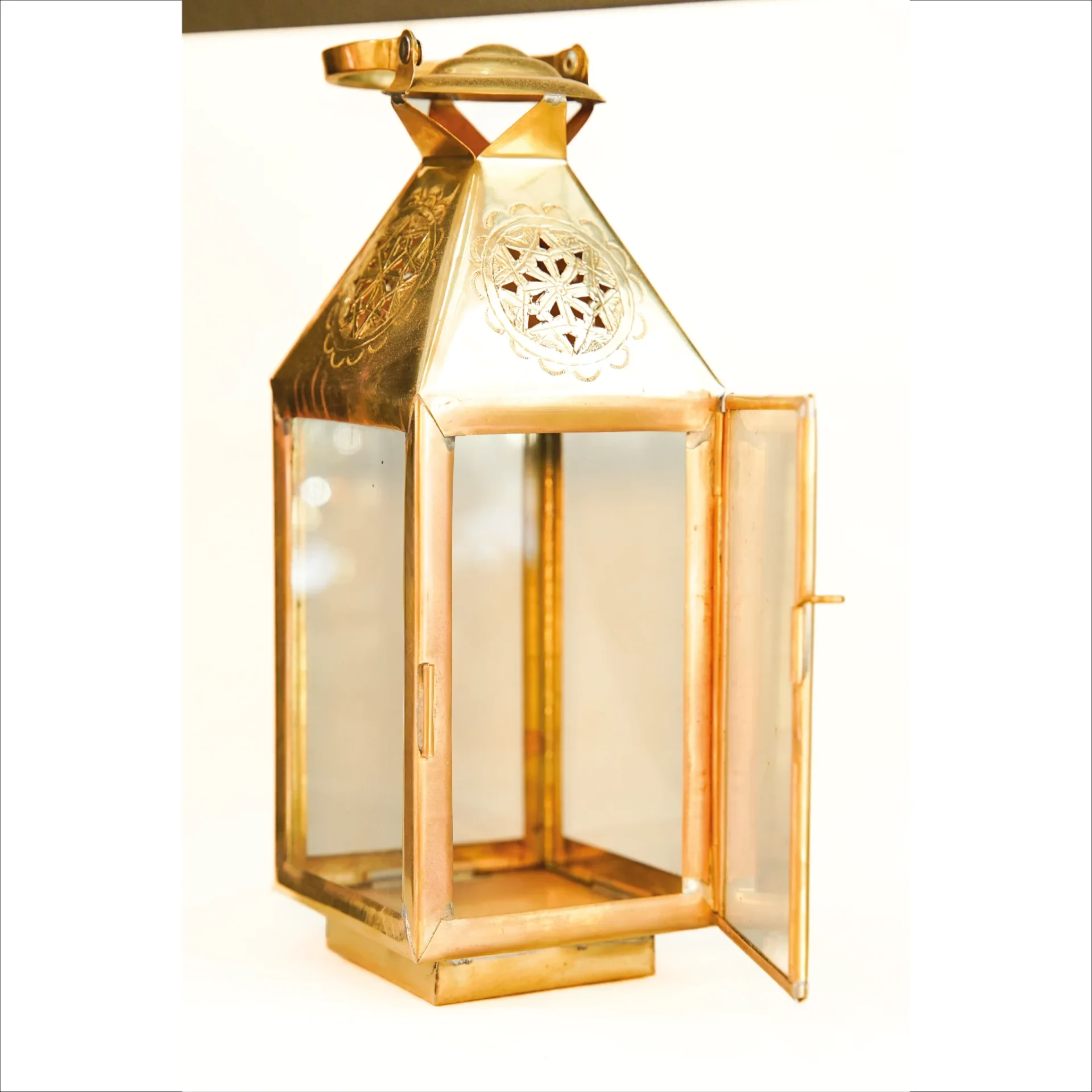 - Handgefertigte marokkanische Laterne aus Messing - Elegantes Design aus Glas und Messing