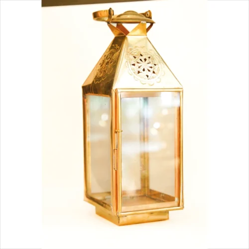 Bringen Sie den Charme marokkanischer Handwerkskunst in Ihren Raum mit dieser exquisiten handgefertigten Messinglaterne. Mit ihrer schönen Kombination aus poliertem Messing und transparenten Glasscheiben verleiht diese Laterne jedem Ambiente Eleganz und Wärme. Die filigranen Messingdetails verleihen ihr einen Hauch von traditioneller Kunstfertigkeit und machen sie zu einem außergewöhnlichen Dekorationsstück.