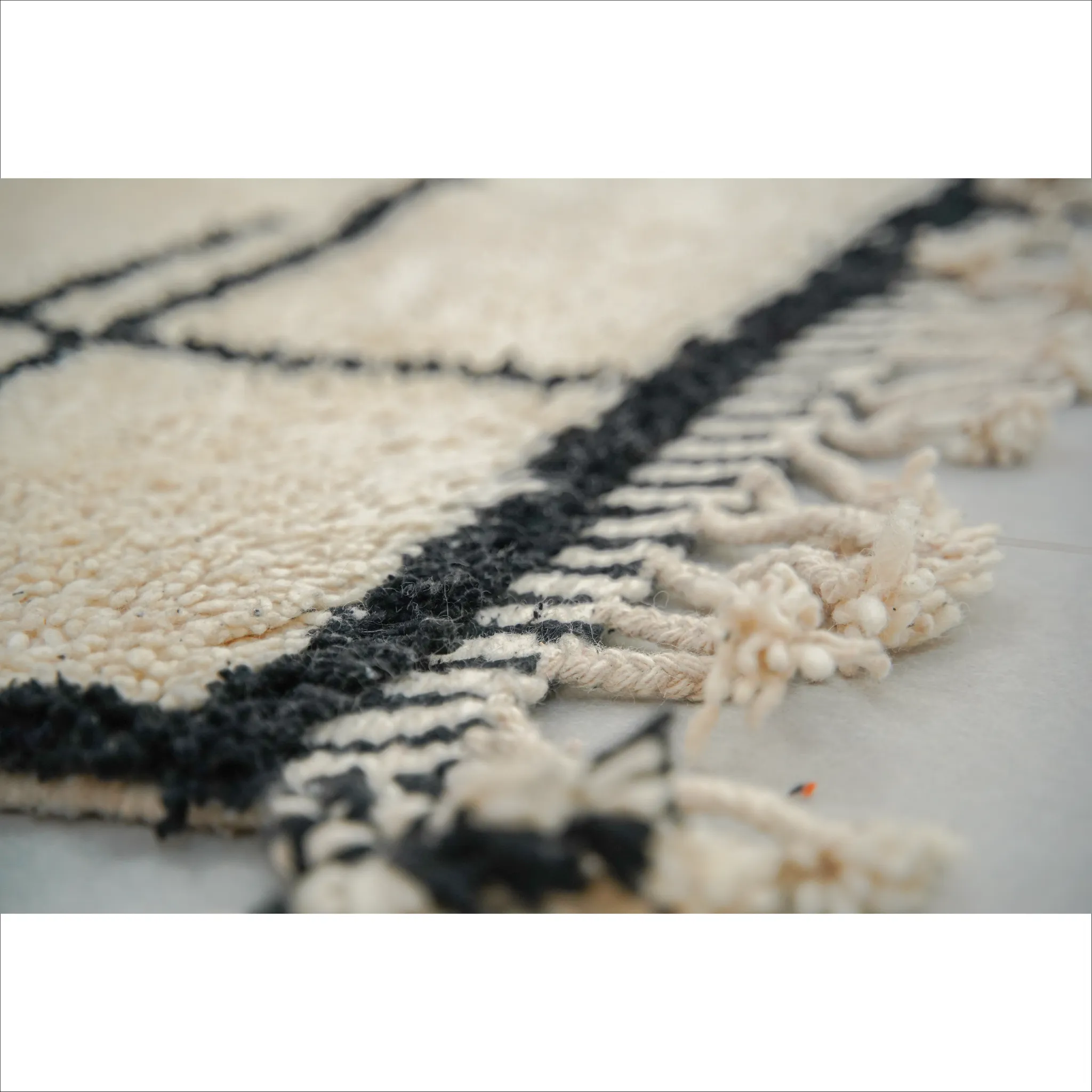 Handgewebter marokkanischer Wollteppich - Minimalistisches Schwarz und Creme