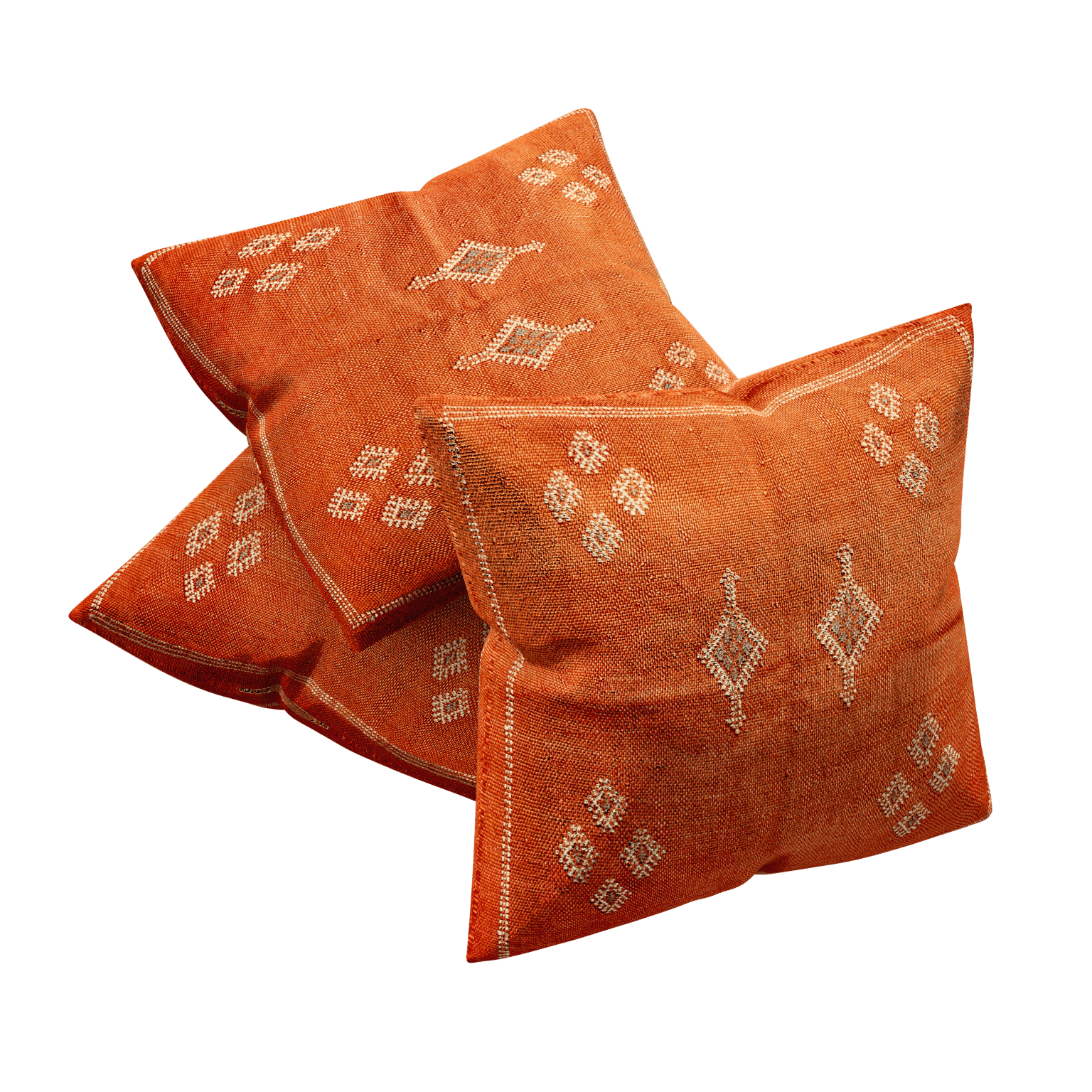 available in a range of colors and sizes to complement any decor. The smaller 45 x 45cm size is ideal for accent spaces where you want to add a pop of color. Indulge in the luxurious feel of cactus silk with our lumbar pillow, available in a striking orange hue. Take advantage of our sale on the cactus silk lumbar pillow, or grab a dupe of the popular Moroccan Cactus Silk Pillow Orange cover today.