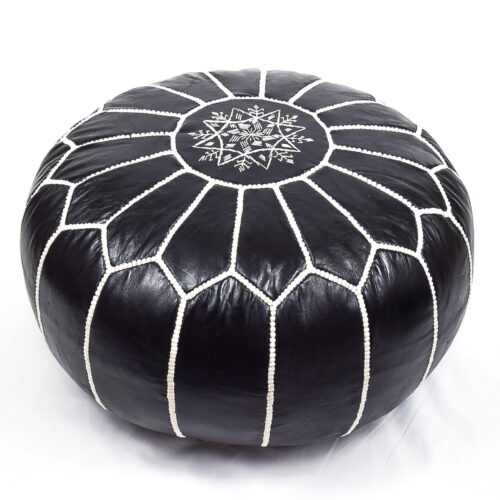 Enhance your home with this black Moroccan leather pouf, a perfect blend of style, practicality, and cultural heritage.